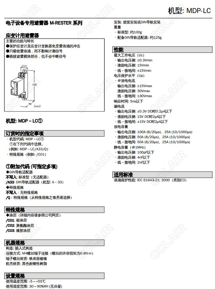 MDP-LC,MDP-LC/33,MDP-LC/Q,應(yīng)變計(jì)用 插入型避雷器