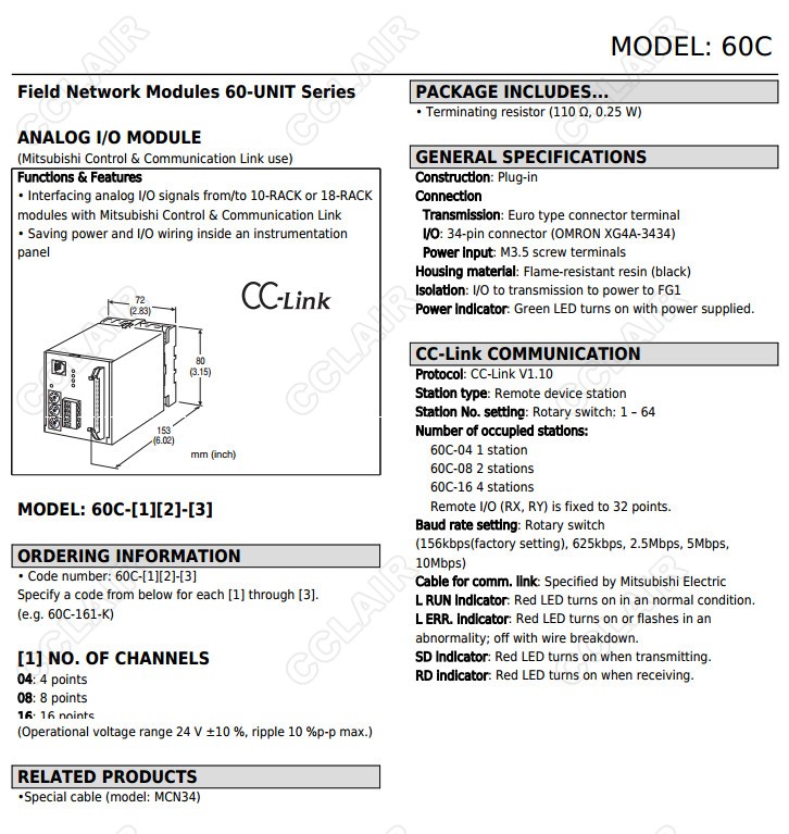 60C,60C-161-K,60C-041,60C-042,60C-081,60C-082,60C-161,60C-162,模擬量I/O模塊