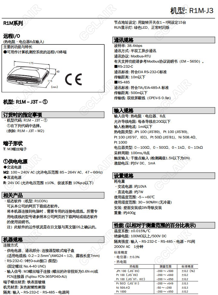 R1M-J3,R1M-J3T-M2,R1M-J3T-R,熱電阻/電位器 8點輸入模塊,R1MS-A1,