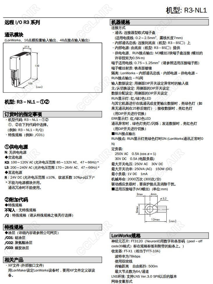R3-NL1,R3-NL1-R/Q,R3-NL1-N,R3-NL1-K3,R3-NL1-L3,R3-NL1-R,LONWORKS通訊模塊