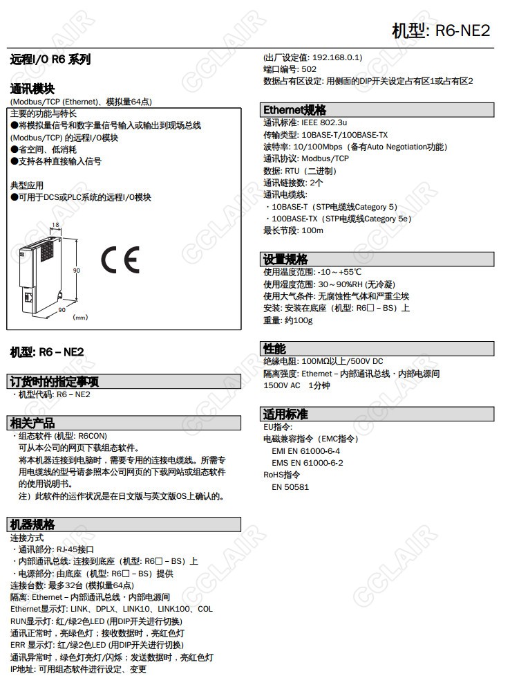 R6-NE2 Ethernet通訊模塊Modbus/TCP,64點(diǎn)模擬量信號(hào)