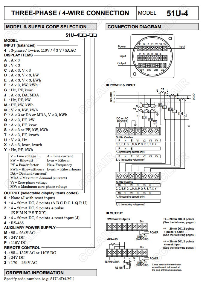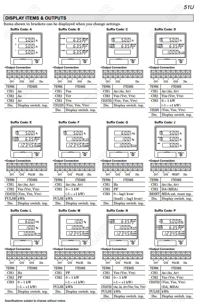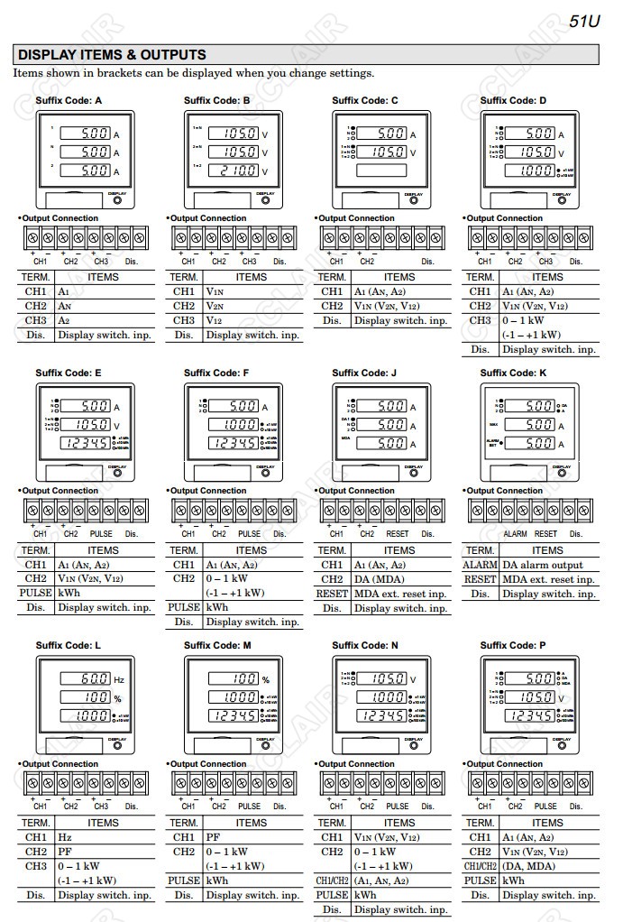 51U,51U-0,51U-1,51U-2,51U-3,51U-4,配電盤嵌入式多功能電量表