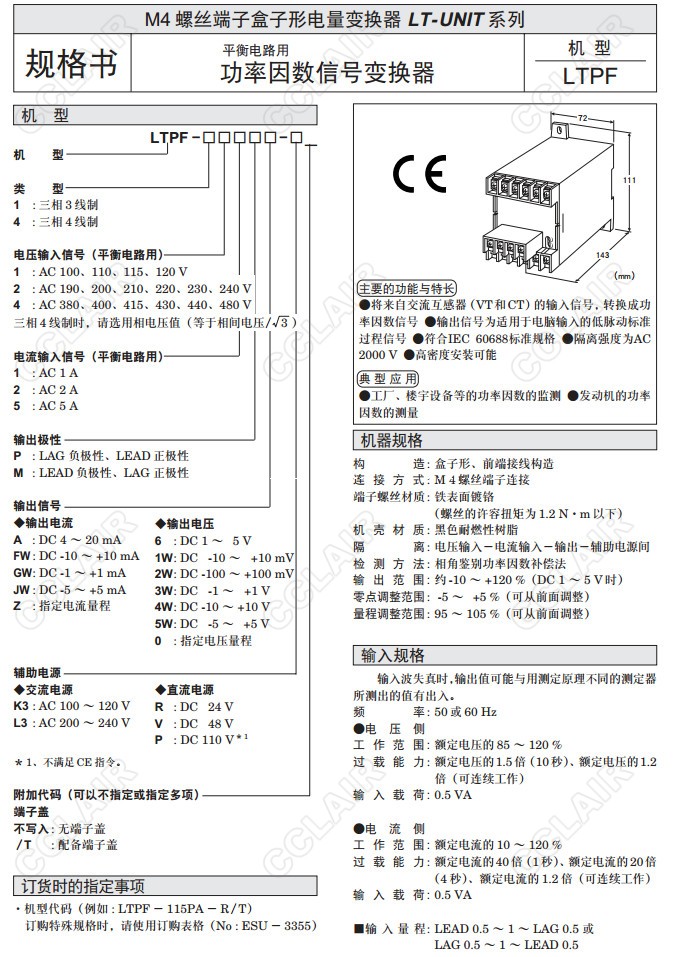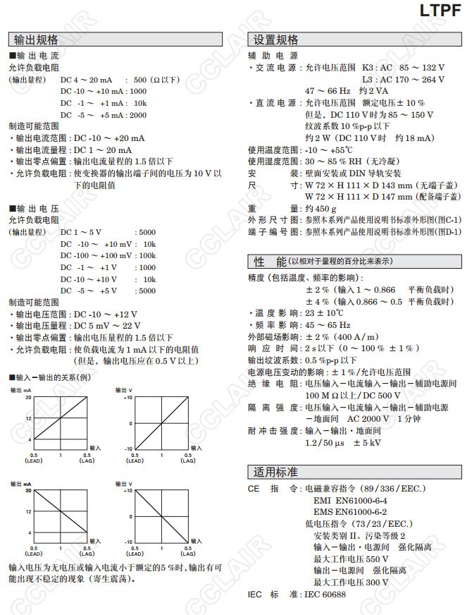 LTPF,LTPF-115PA-R/T,LTPF-11,LTPF-12,LTPF-14,LTPF-41,LTPF-42,功率因數(shù)信號(hào)變換器(平衡電路用)