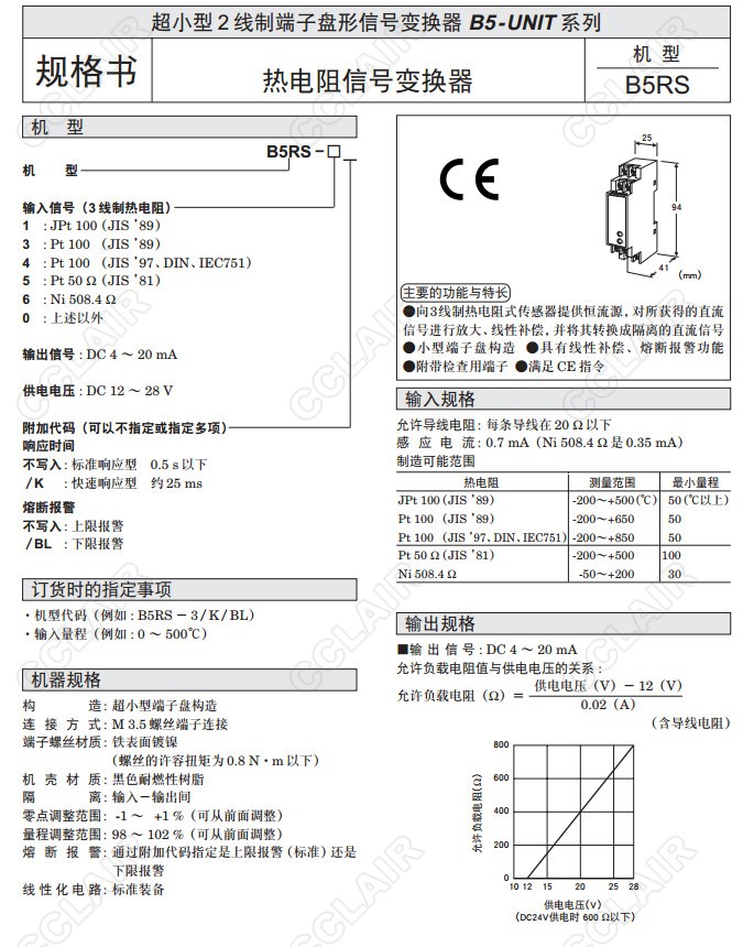 B5RS,B5RS-3K/BL,B5RS-1,B5RS-3,B5RS-4,B5RS-5,B5RS-6,B5RS-0,熱電阻信號變換器