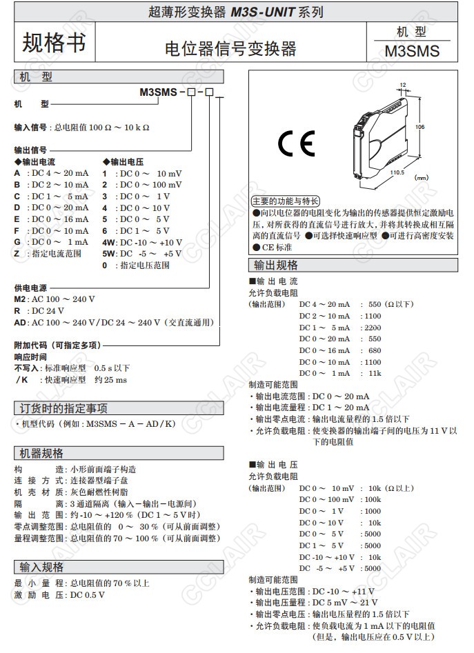M3SMS,M3SMS-A-AD/K,M3SMS-A,M3SMS-B,M3SMS-C,M3SMS-D,M3SMS-E電位計信號變換器M3SMS-F,M3SMS-G,M3SMS-Z,M3SMS-1,M3SMS-2,M3SMS-3,M3SMS-4,M3SMS-5,M3SMS-6,M3SMS-4W,M3SMS-5W,M3SMS-0,