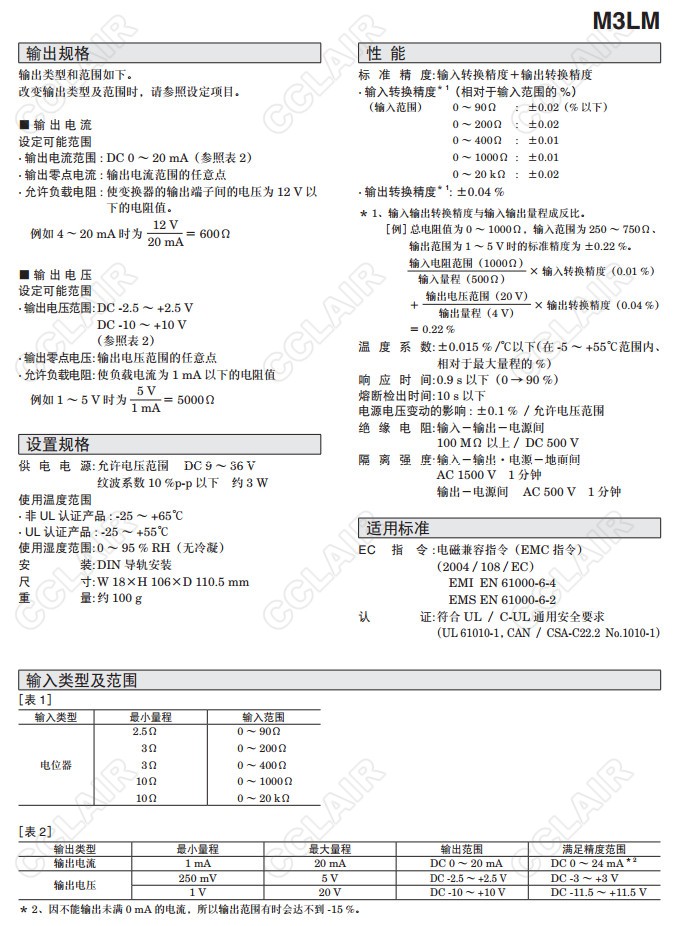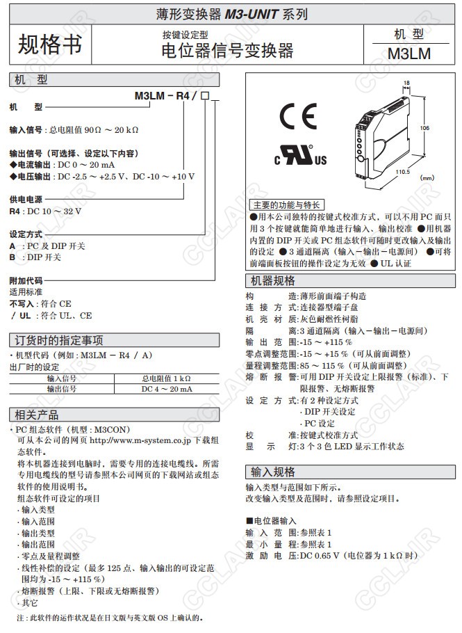 M3LM,M3LM-R4/A,M3LM-R4/B,M3LM-R4/A/UL,M3LM-R4/B/UL,電位器信號變換器(按鍵設(shè)定型)