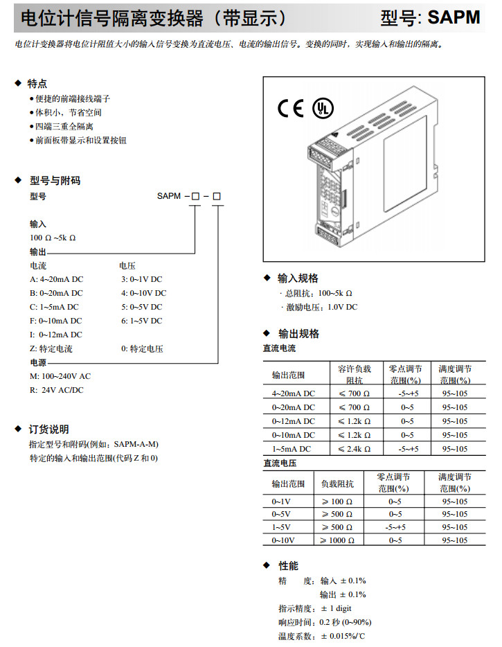 SAPM,SAPM-A-M,SAPM-A-R,SAPM-B-M,SAPM-B-R,SAPM-C-M,SAPM-Z-R,電位計(jì)信號(hào)隔離變換器(帶顯示)SAPM-C-R,SAPM-F-M,SAPM-F-R,SAPM-I-M,SAPM-I-R,SAPM-Z-M,