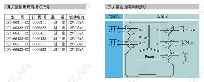 本產(chǎn)品將安全區(qū)的電源通過開關(guān)控制,驅(qū)動危險(xiǎn)區(qū)的電磁閥、聲光報(bào)警器等本安設(shè)備。