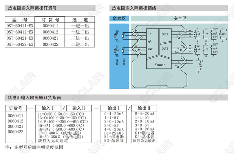 本產(chǎn)品將來(lái)自危險(xiǎn)的區(qū)二線(xiàn)制、三線(xiàn)制熱電阻信號(hào)轉(zhuǎn)換成對(duì)應(yīng)溫度值的電壓、電流、RS485信號(hào)或開(kāi)關(guān)量信號(hào),從危險(xiǎn)區(qū)隔離傳送到安全區(qū),該產(chǎn)品需獨(dú)立供電。