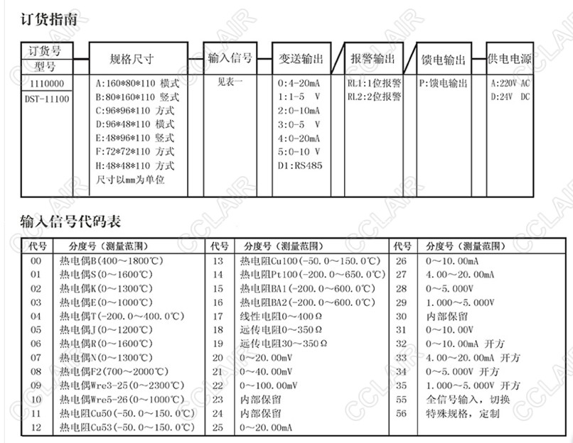DST-11100系列單回路數(shù)字顯示控制儀(簡(jiǎn)易型),傻瓜式操作,0.3級(jí)測(cè)量精度,7款外型尺寸,雙四位 LED顯示,可支持熱電偶、熱電阻、電壓(可開(kāi)方運(yùn)算)、電流(可開(kāi)方運(yùn)算)及變送器輸入,適用溫度、壓力、流量、液位、濕度等工業(yè)過(guò)程量的監(jiān)測(cè)。支持2路報(bào)警功能,支持1路變送輸出或支持采用標(biāo)準(zhǔn)MODBUS協(xié)議的RS485 通訊接口,1路DC24V饋電輸出,輸入端、輸出端、電源端光電隔離,100-240V AC/DC或20-29V DC開(kāi)關(guān)電源供 電,標(biāo)準(zhǔn)卡入式安裝,工作環(huán)境溫度在0-50℃,且相對(duì)濕度5-85%RH無(wú)凝結(jié)。