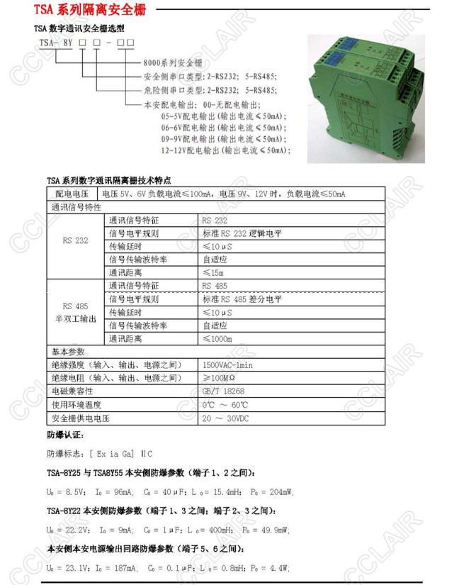 TSA-8Y25-12,TSA-8Y22-12,TSA-8Y55-12,TSA隔離安全柵(數(shù)字通訊安全柵)