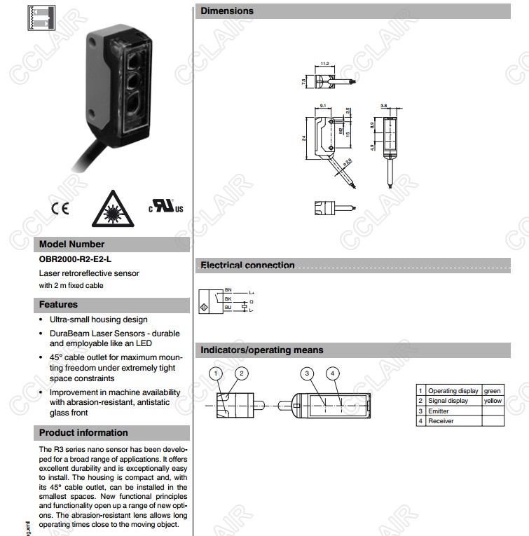 OBR2000-R2-E2-L,反射板型傳感器