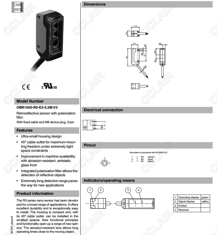 OBR1000-R2-E2-0,2M-V3,OBR1000-R2-E2-0,2M-V31,反射板型傳感器