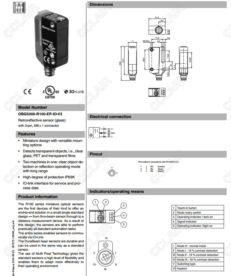 OBG5000-R100-EP-IO-V3,反射板型傳感器