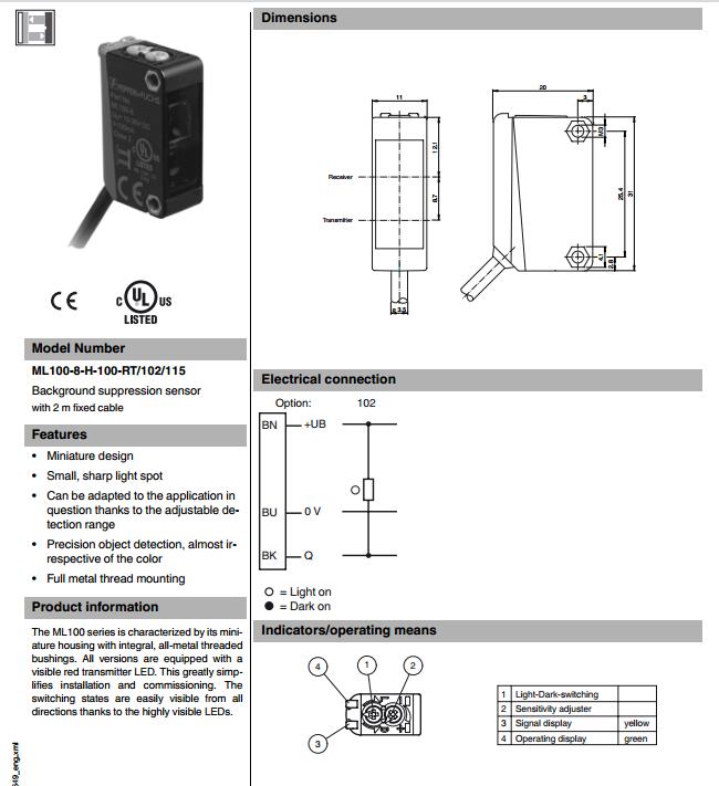 ML100-8-H-100-RT/102/115,漫反射型傳感器