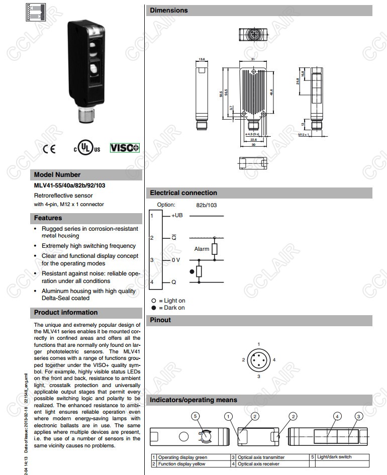 MLV41-55/40a/82b/92/103,反射板型傳感器