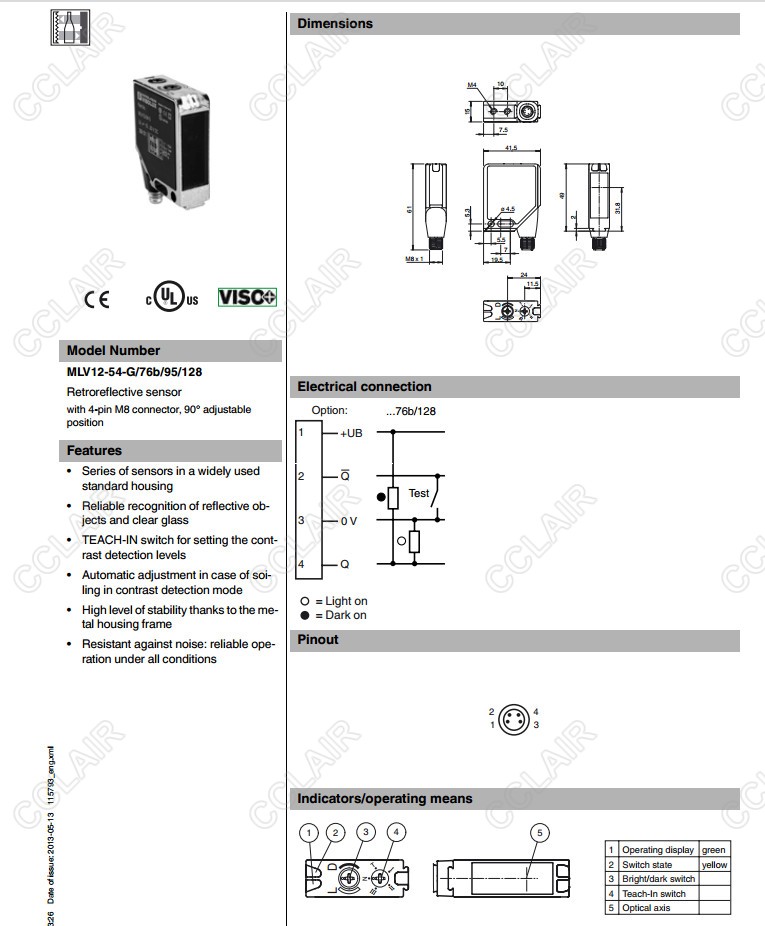MLV12-54-G/76b/95/128,反射板型傳感器