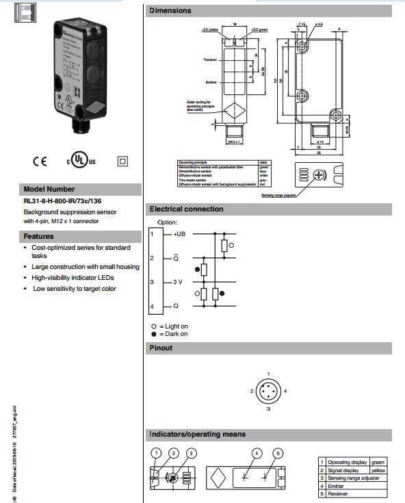 RL31-8-H-800-IR/73c/136,漫反射型傳感器