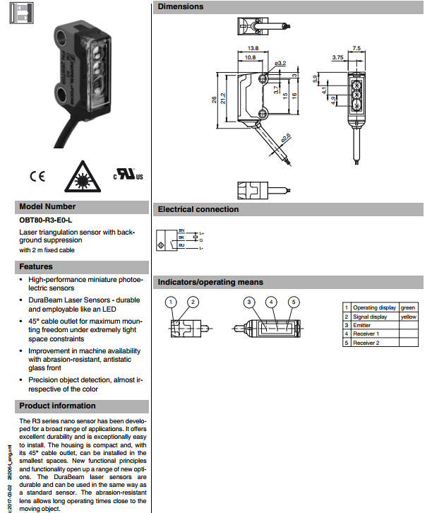 OBT80-R3-E0-L,漫反射型傳感器