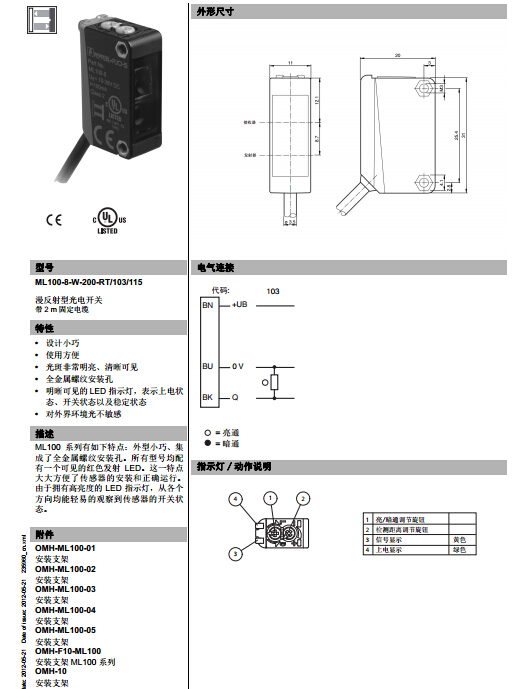 ML100-8-W-200-RT-103-115,漫反射型傳感器