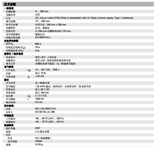 ML100-8-W-200-RT-102-115,漫反射型傳感器