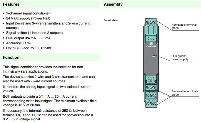 KFD2-CR4-1.2O,模擬量輸入信號(hào)調(diào)節(jié)器