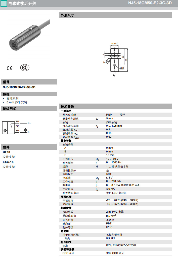 NJ5-18GM50-E2-3G-3D,NJ5-18GM50-E2-3G-3D-5M感應式傳感器