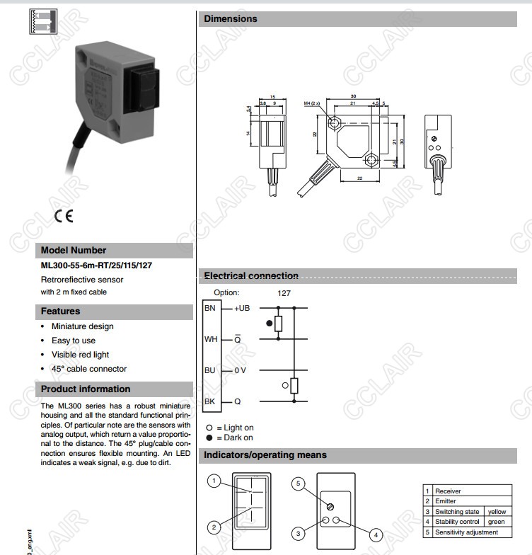 ML300-55-6m-RT/25/115/120,ML300-55-6m-RT/25/115/127,ML300-55-6m-RT/25/82d/103/115,反射板型傳感器 |