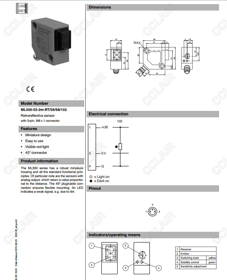ML300-55-2m-RT/59/98/102,ML300-55-2m-RT/59/98/103,反射板型傳感器