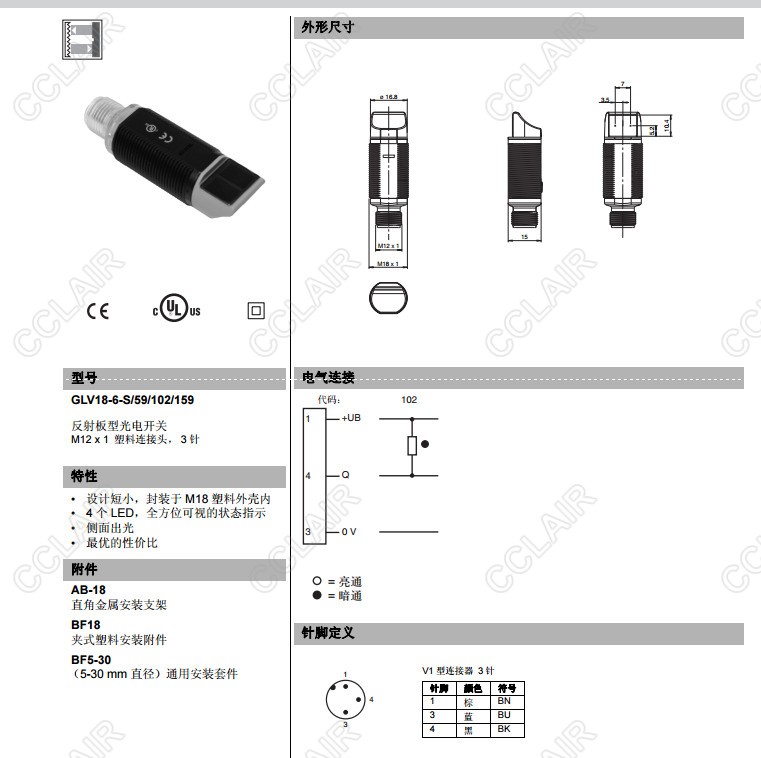 GLV18-6-S/59/102/159,反射板型傳感器
