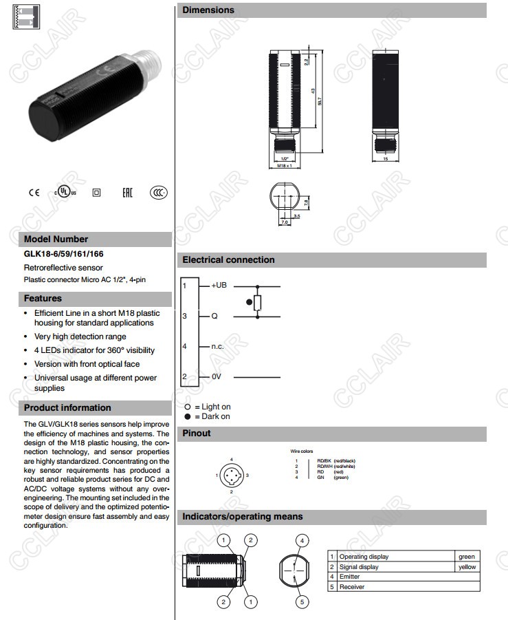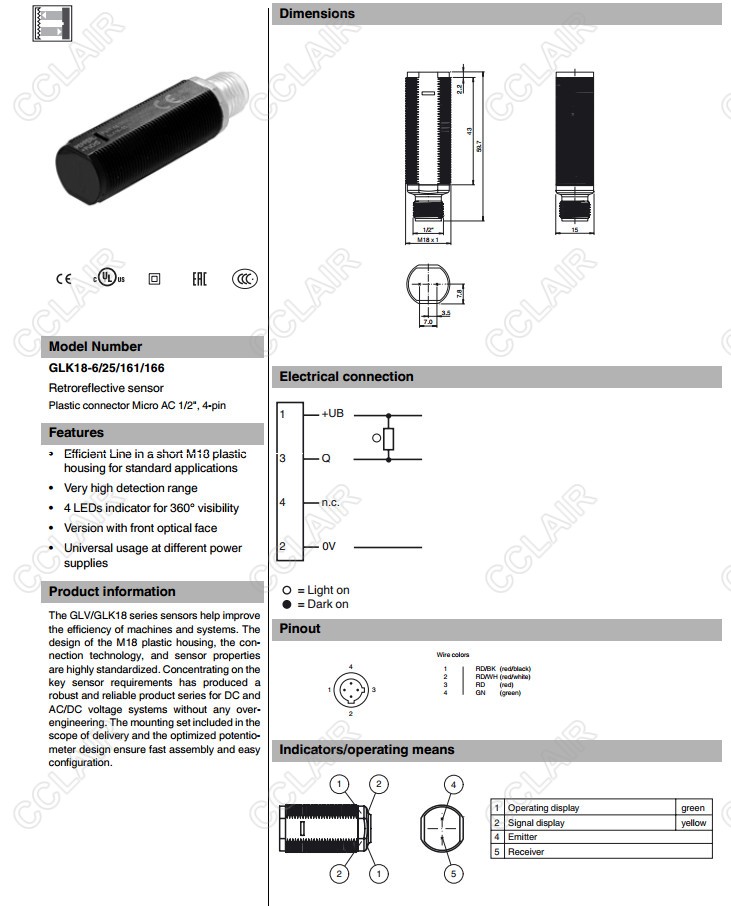 GLK18-6/25/161/166,GLK18-6/59/161/166,反射板型傳感器