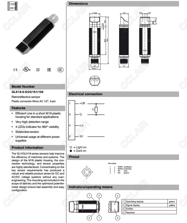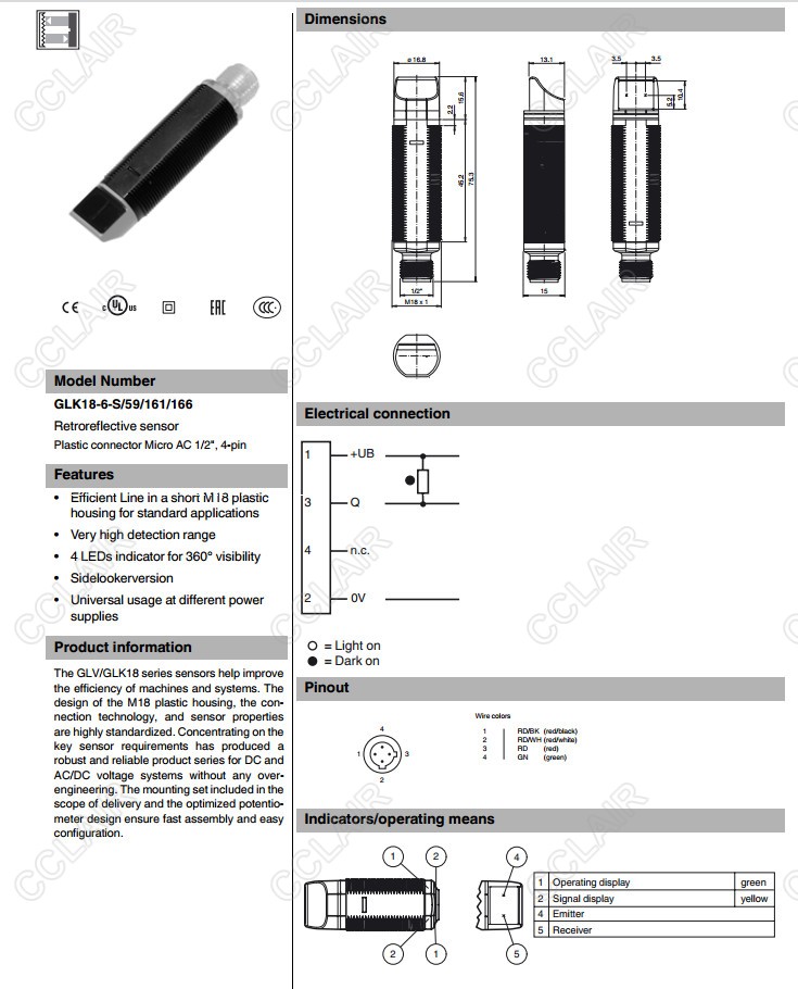 GLK18-6-S/25/161/166,GLK18-6-S/59/161/166,反射板型傳感器