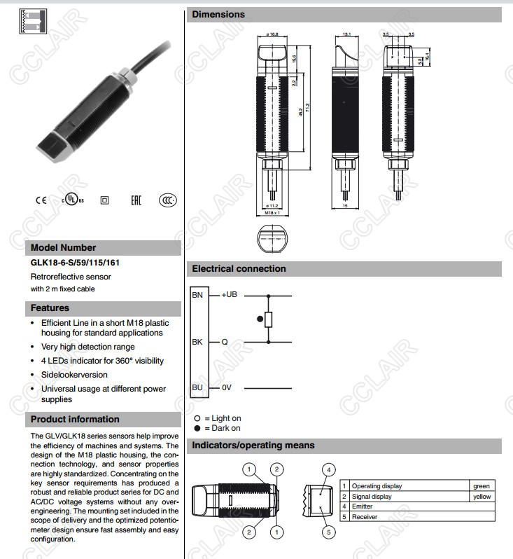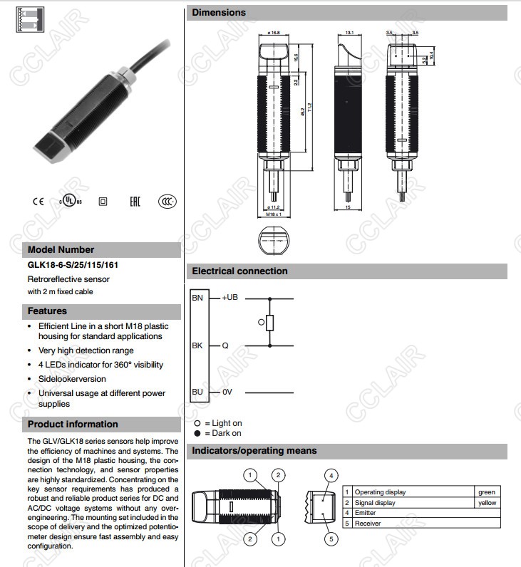 GLK18-6-S/25/115/161,GLK18-6-S/59/115/161,反射板型光電開(kāi)關(guān)