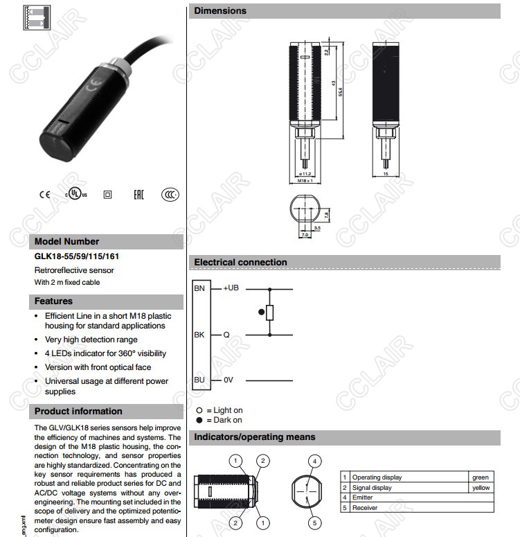 GLK18-55/25/115/161,GLK18-55/59/115/161,反射板型傳感器