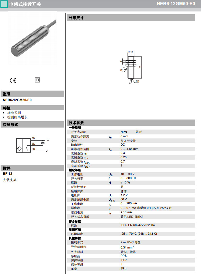NEB6-12GM50-E0,NEB6-12GM50-E1,NEB6-12GM50-E2感應式傳感器