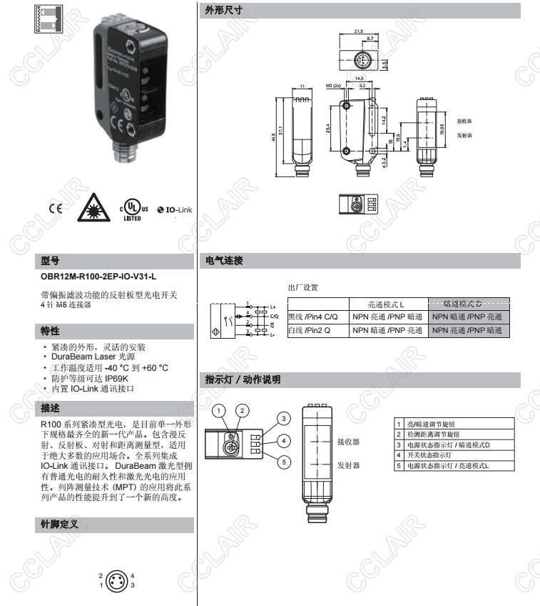 OBR12M-R100-2EP-IO-V31-L,OBR7500-R100-2EP-IO-V31,反射板型傳感器