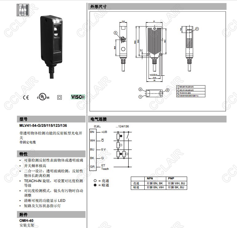 MLV41-54-G/25/115/123/136,反射板型傳感器