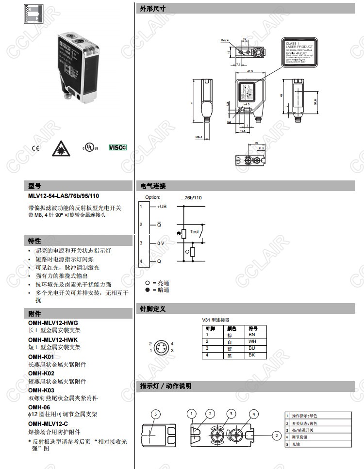 MLV12-54-LAS/76b/95/110,反射板型傳感器