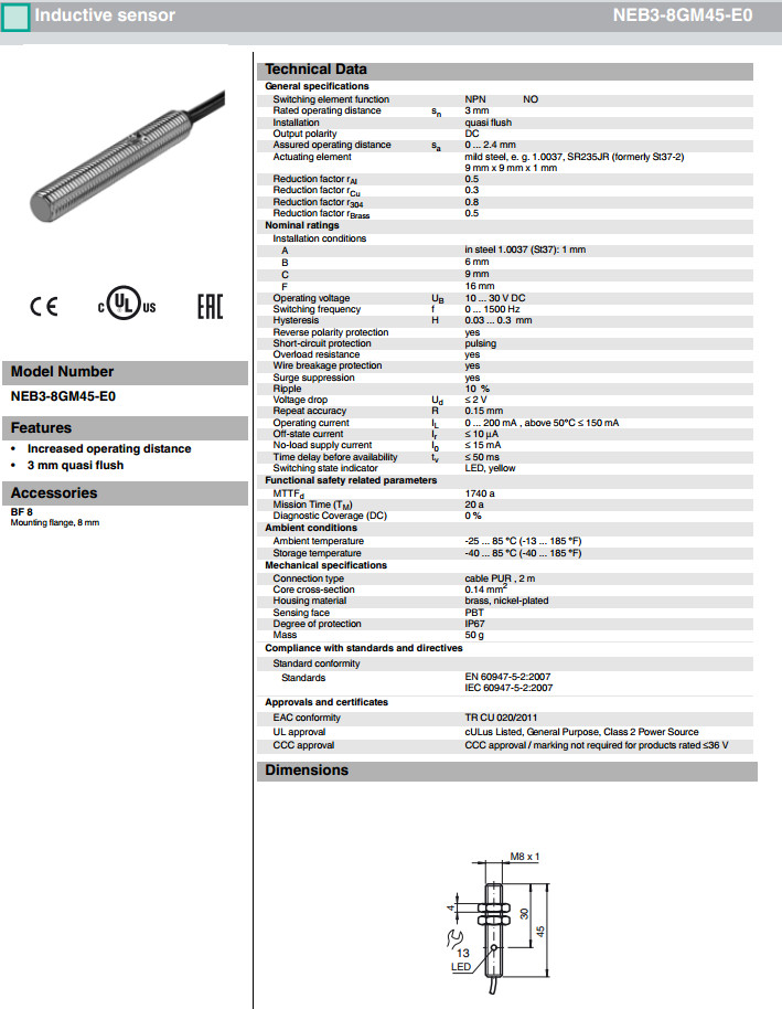 NEB3-8GM45-E0,NEB3-8GM45-E1,NEB3-8GM45-E2感應式傳感器