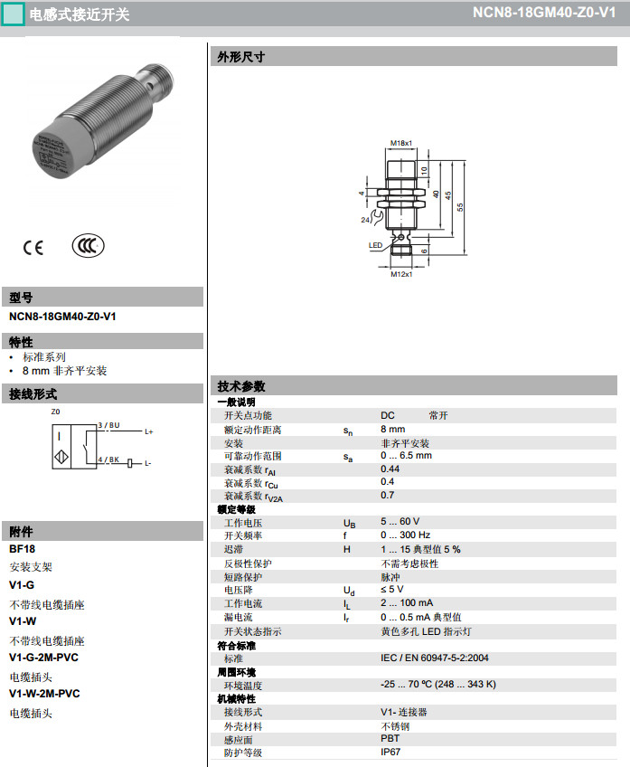 NCN8-18GM40-Z0-V1,NCN8-18GM40-Z1-V1感應式傳感器