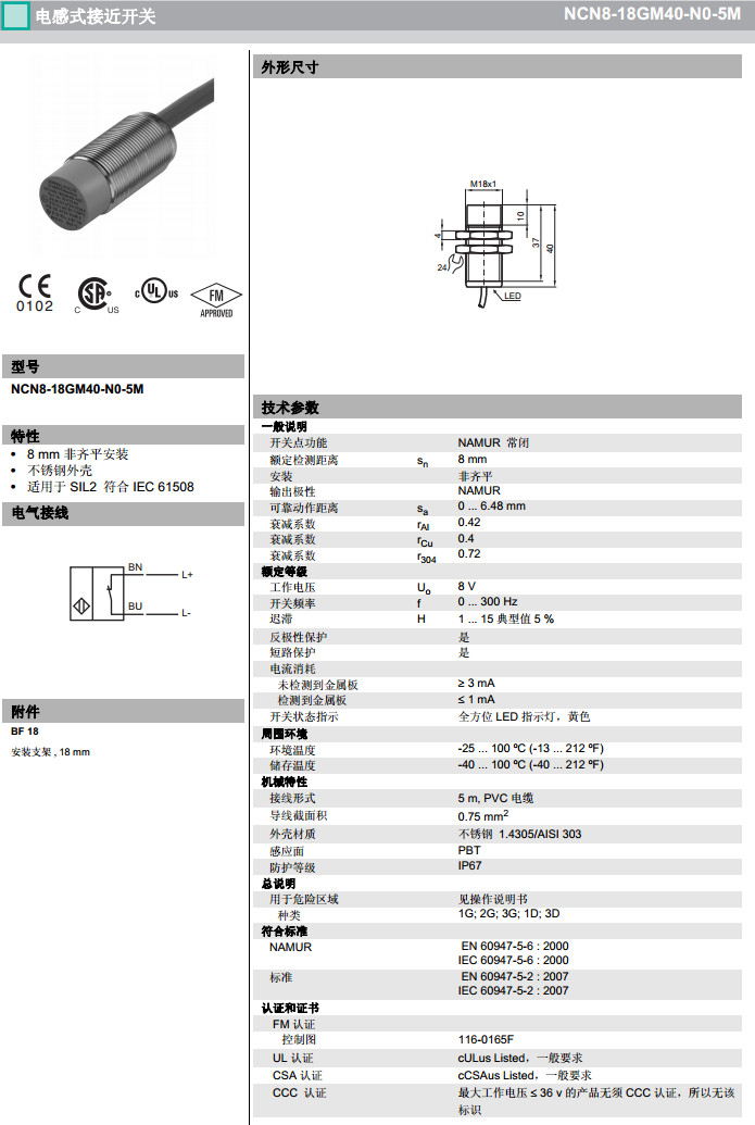 NCN8-18GM40-N0,NCN8-18GM40-N0-10M,NCN8-18GM40-N0-5M感應式傳感器