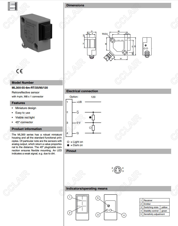 ML300-55-6m-RT/25/95/120,反射板型傳感器