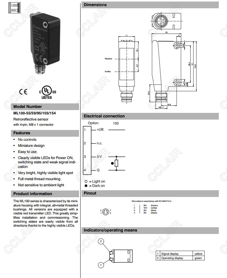 ML100-55/59/95/103/154,反射板型光電開(kāi)關(guān)