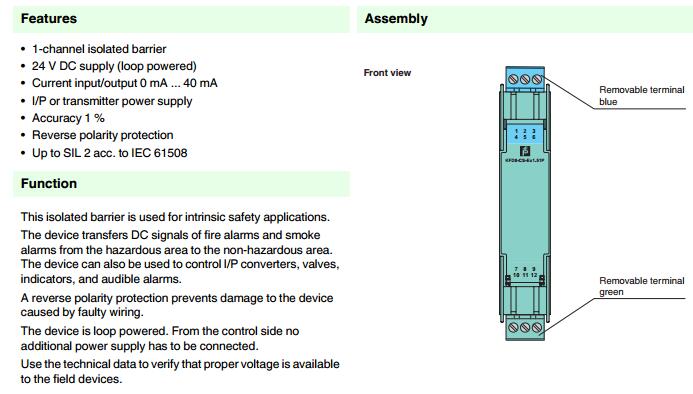 KFD0-CS-Ex1.51P,模擬量輸出安全柵