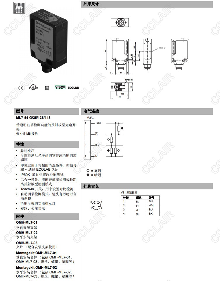 ML7-54-G/25/136/143,反射板型傳感器