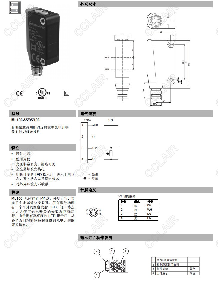 ML100-55/95/103,反射板型光電開(kāi)關(guān)