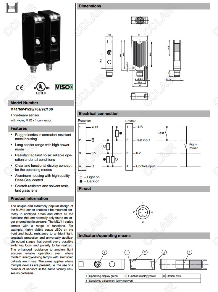 M41/MV41/25/76a/92/136,M41/MV41/76a/82b/92/103,對(duì)射型光電開關(guān)