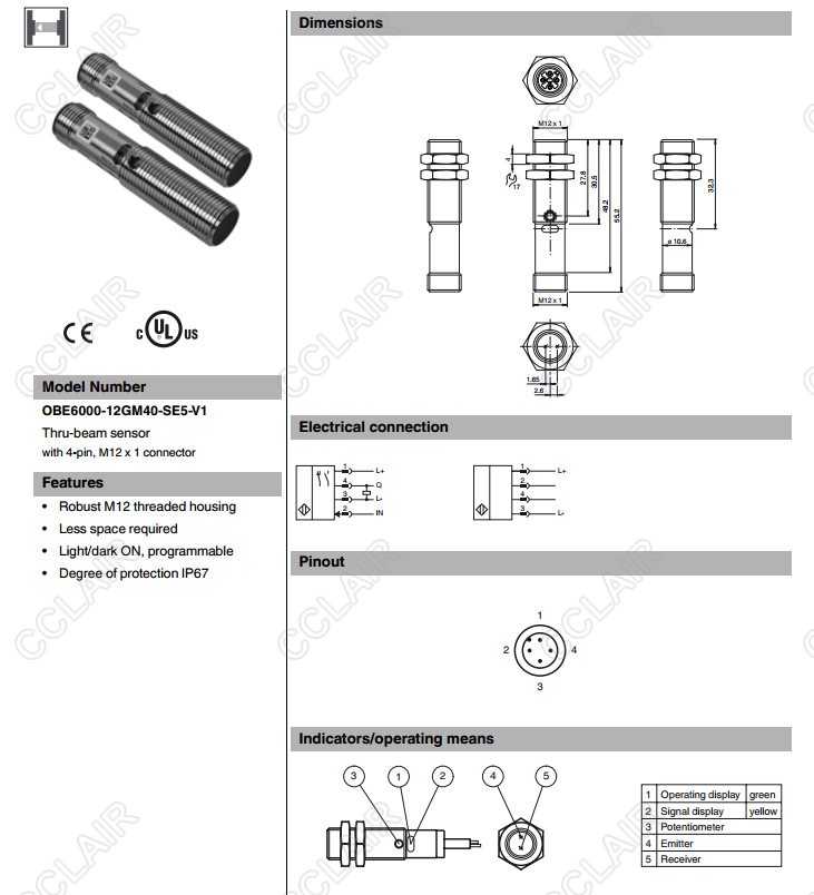 OBE6000-12GM40-SE5-V1,對(duì)射型傳感器