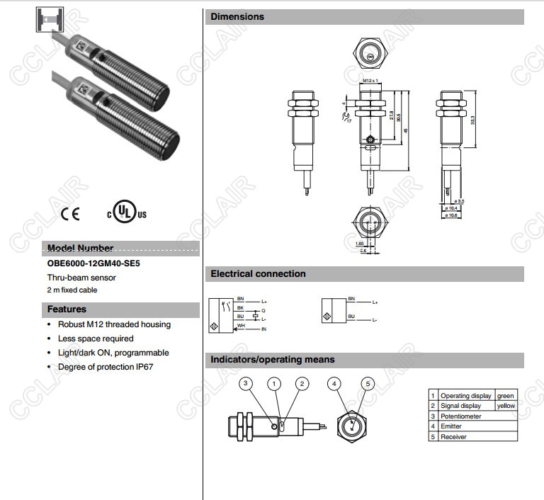 OBE6000-12GM40-SE5,對射型傳感器