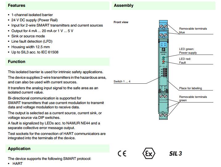 KCD2-STC-Ex1.ES,模擬量輸入安全柵
